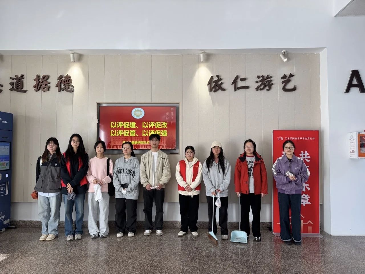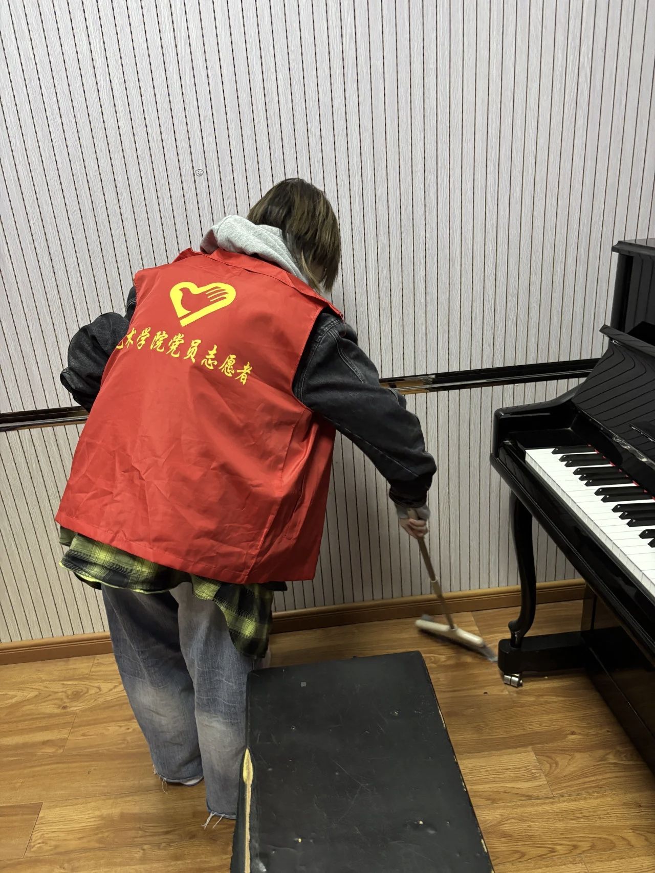 在音乐系,黄炜景、韩易霖、易可涵、王玥等组长的带领下,三十余名党员和入党积极分子志愿者满怀热情,投入到音乐系琴房、实验室、舞蹈室、演奏教室等共计70间大中小型教学场所的清理工作中。他们细致擦拭乐器设备,认真清扫地面,规整教学物品,确保了音乐教学环境的整洁与优雅。