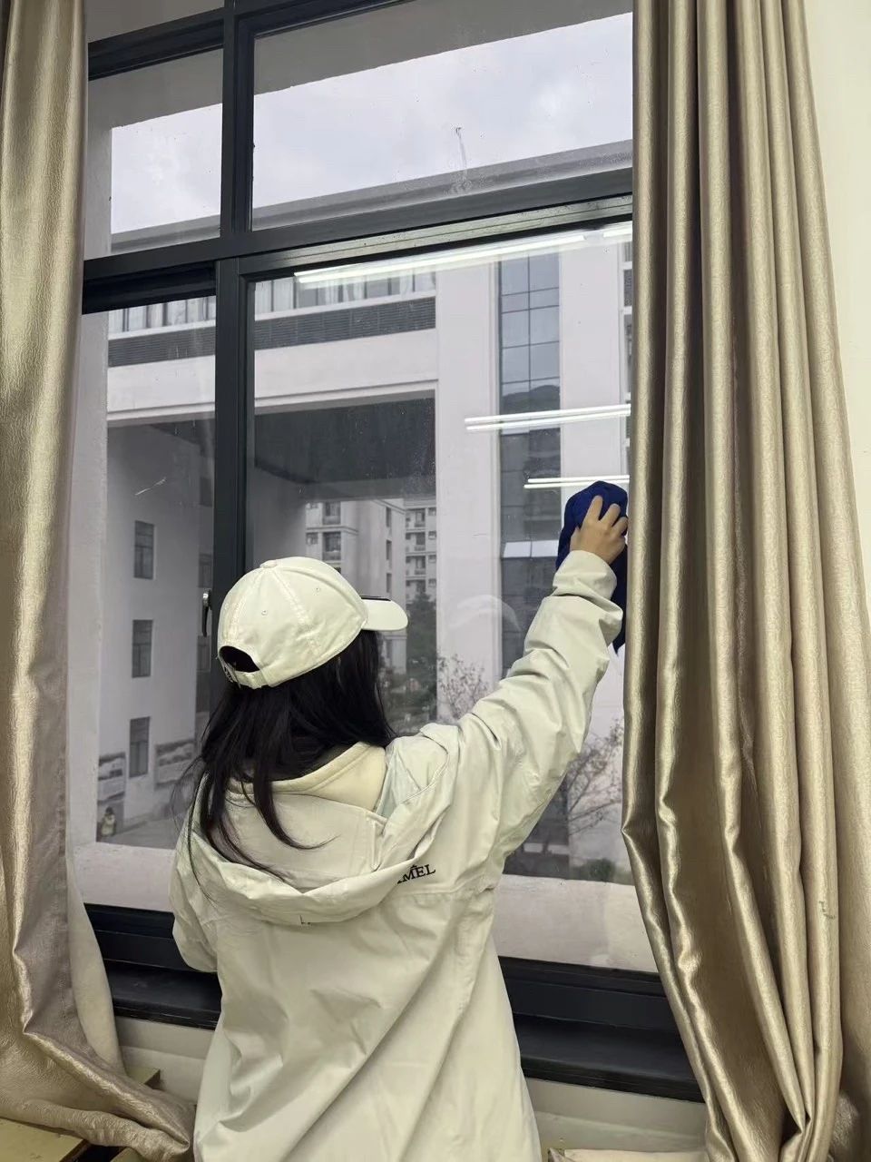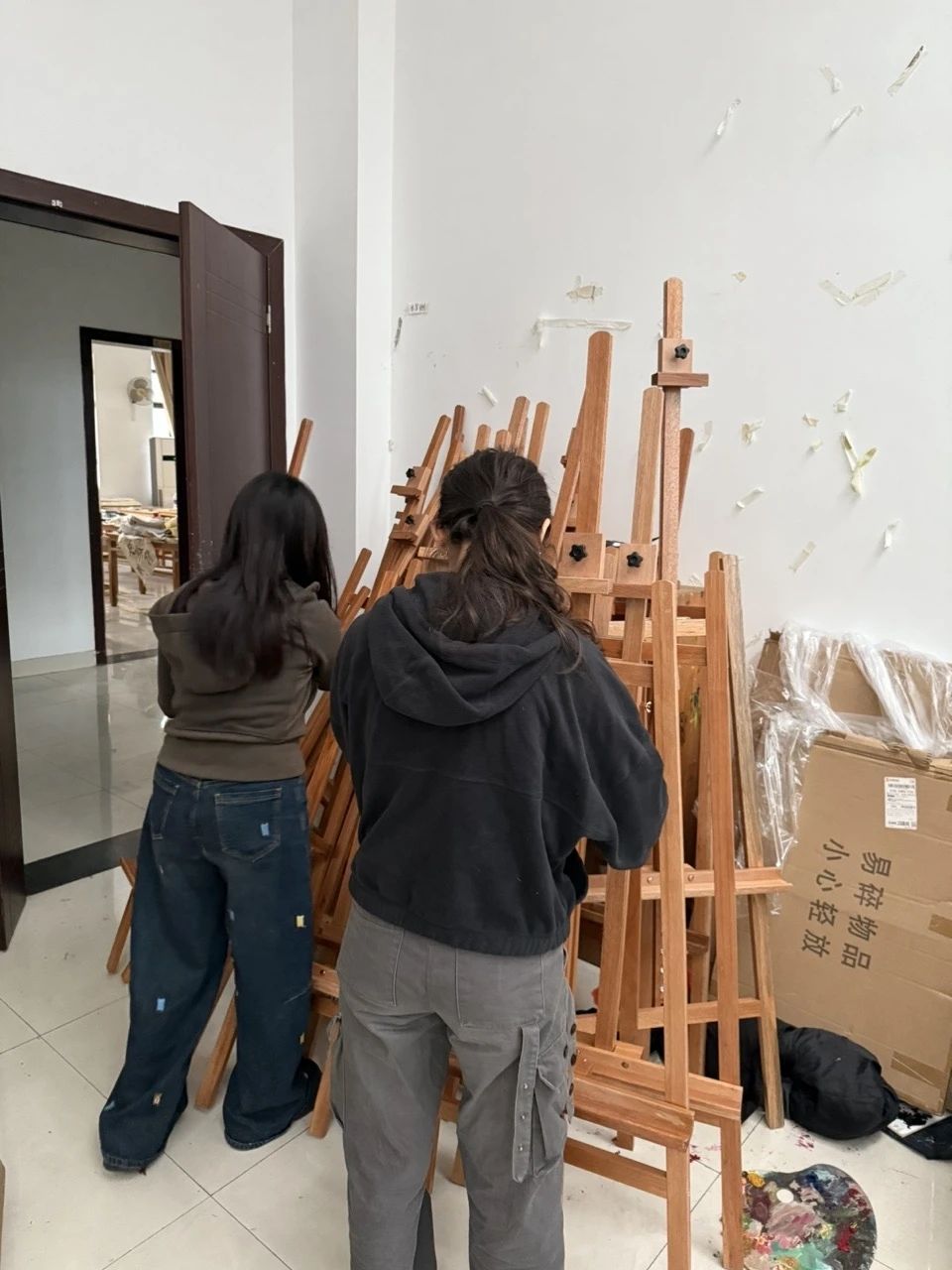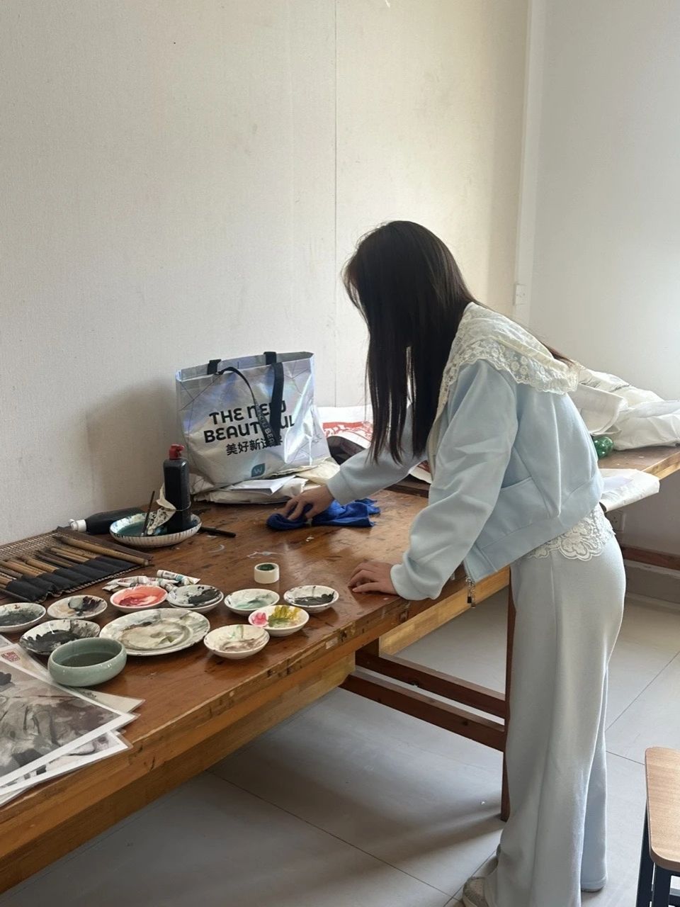 美术系的劳动现场同样井然有序。在袁文玥、吴玥等组长的带领下,十余名志愿者发扬不怕脏、不怕累的精神,对国画教室、油画教室等16间专业教室进行了深度清洁。他们小心挪动画架画板,清理颜料残渍,擦拭静物和各类雕塑,为美术创作营造了更加清新、整洁的空间。