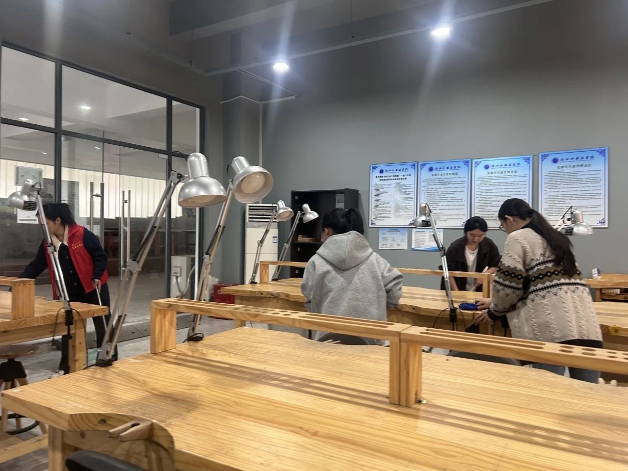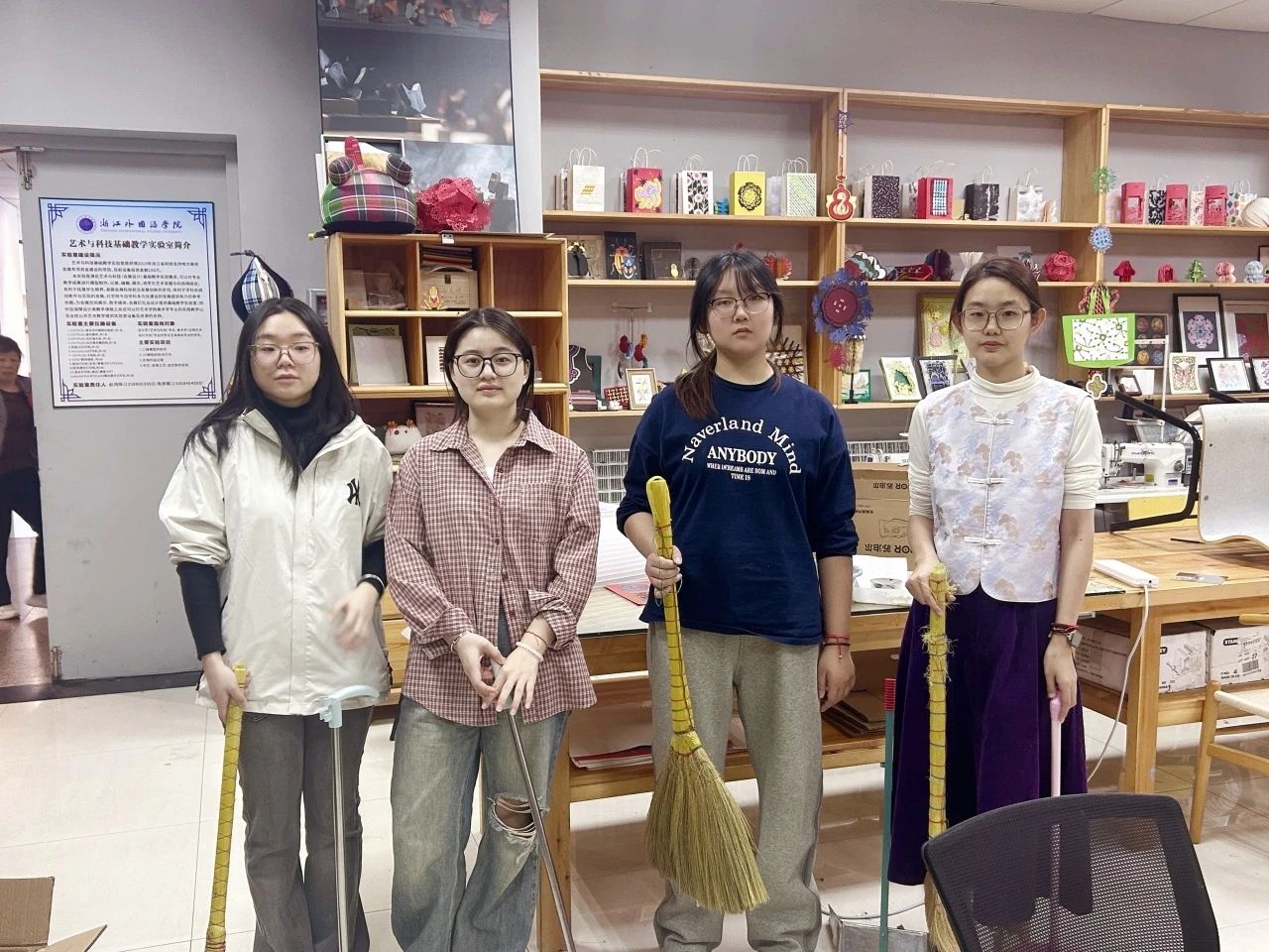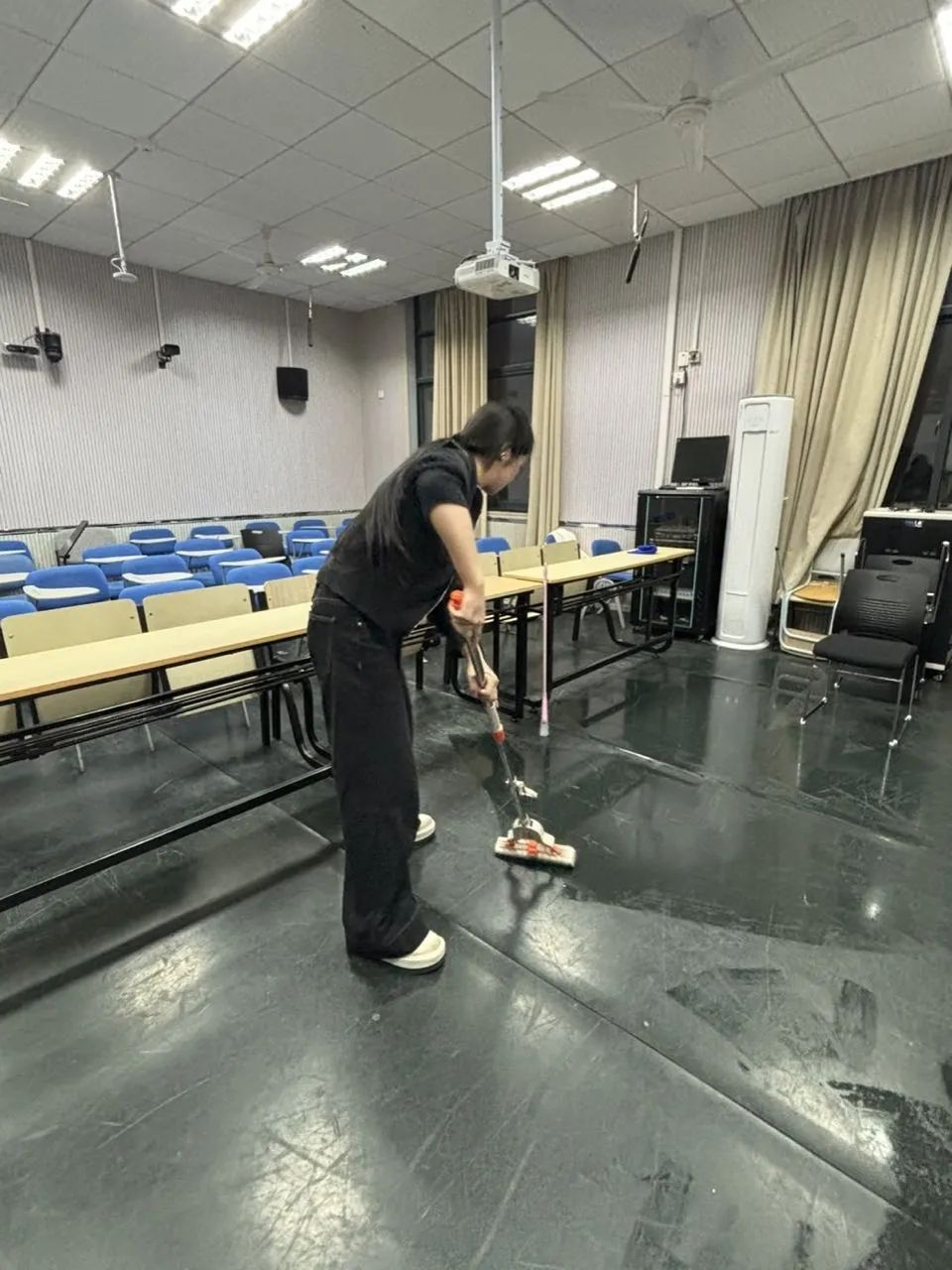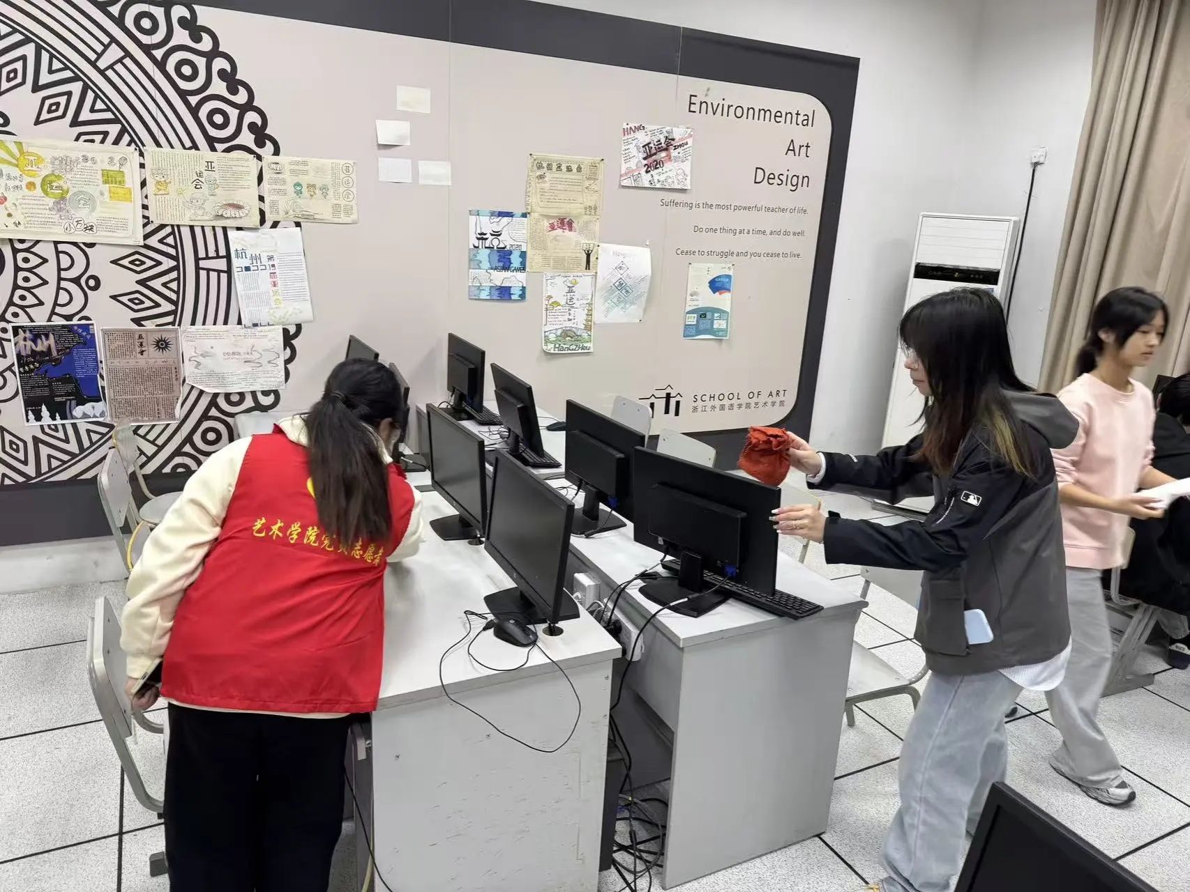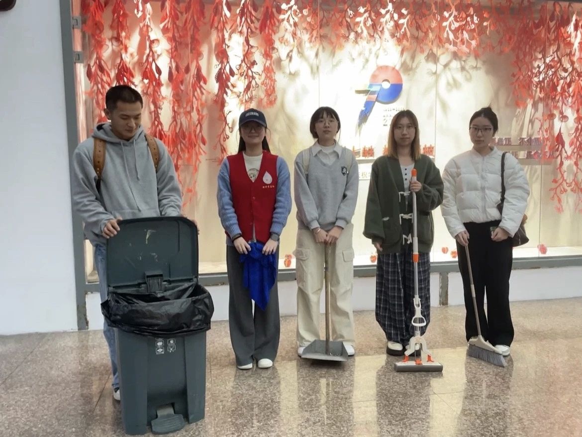 设计系的志愿者们则在余明哲、李卓宸、王玉茜组长的周密安排下,二十余人分工协作,高效完成了机房、多媒体教室、各类实验室等23间教学和实验场所的清理任务。面对精密的电子设备和复杂的实验器材,大家格外谨慎,确保在彻底清扫的同时,保障了教学设备的完好与安全。