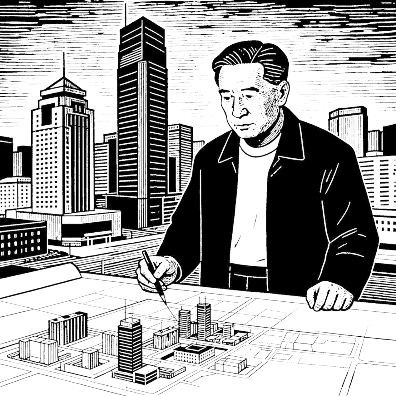 创作说明:以版画形式,展现牛玉儒专注城市规划场景,结合其清廉为民、实干奉献事迹,致敬“草原孺子牛”的担当与坚守。