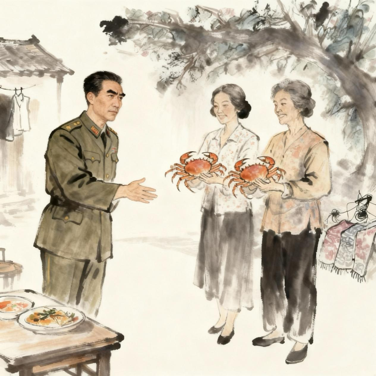 故事概括:周恩来的廉洁体现在生活点滴与工作细节中。他给自己定 下“三不原则”:不私受礼品、不搞特殊化、不谋私利。建国后,各地同志常带土特产探望,他一律婉拒,实在无法退回的就交公处理。有一次,家乡亲友送来几筐螃蟹,他坚持按市价付钱,还叮嘱工作人员:“以后不准接受任何家乡的馈赠,这是纪律。"他的饮食极为简单,每餐一荤一素,剩饭剩菜从不浪费;衣服穿了多年,补了又补,身边工作人员想给他做件新衣服,都被他坚决拒绝。