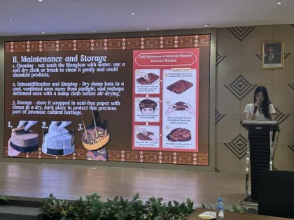 谈及此次经历,24级美术专业本科生黄蕊表示:“我印象最深的是在村里村民们为我们准备了盛大的表演。当时乐手们坐在我从未见过的乐器前,戴着blangkon帽子,乐器在灯光里闪着金色的光泽,伴着陌生的曲调,我体会到了不同的人文风情,毕生难忘。”24级音乐专业本科生张潇文也分享道:“在印尼的研学之旅中,我们亲手编织香蕉叶、体验蜡染艺术,在指尖流转间触摸传统工艺的温度,也在文化交融的时刻里,解锁异国传统文化的独特魅力,收获别样成长与欢喜。”