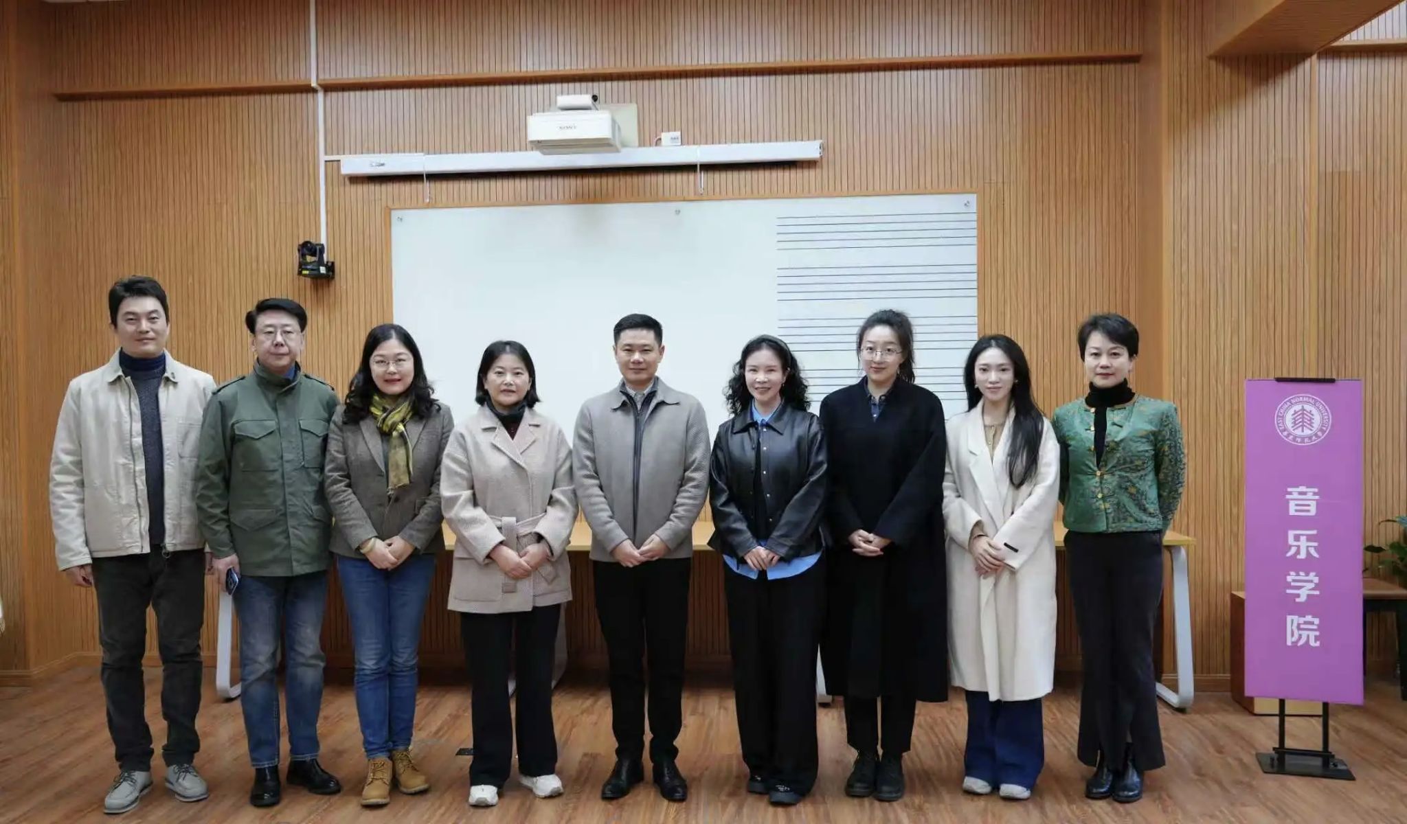 为进一步优化音乐专业人才培养方案,学习借鉴国内一流音乐院校的办学经验,3月24日,学院党委书记丰翔龙带队,副院长冯晓玲、公共艺术部主任孔俏俏、音乐系副主任吴岢霏、音乐系副教授金蕾一行赴华东师范大学音乐学院开展专题调研交流。华东师范大学音乐学院党委书记赵旌旌、副院长郑艳、副院长席恒、键盘系主任谢承峯、院长助理兼院办主任张翼飞出席座谈会。