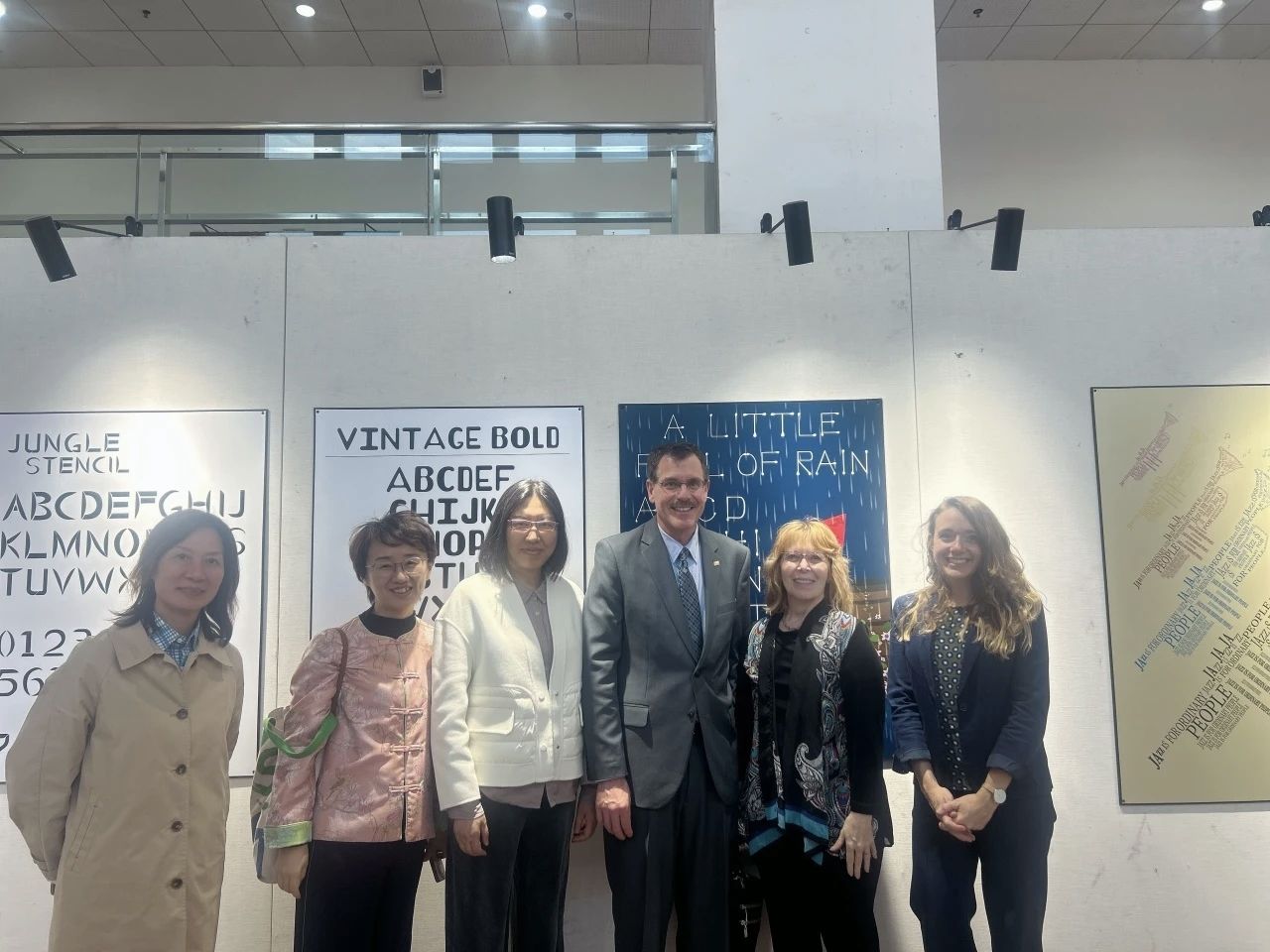 共襄盛展,深化合作情谊。迪恩·范盖伦校长一行参观了《国际艺术设计交流特展》并发表讲话。校长先生对特展的成功举办表示热烈祝贺,他在讲话中指出,此次特展不仅是双方艺术成果的集中展示,更是双方深厚友谊与紧密合作的生动见证。他期待未来能持续深化此类文化交流活动,为师生搭建更为广阔的国际化舞台。
